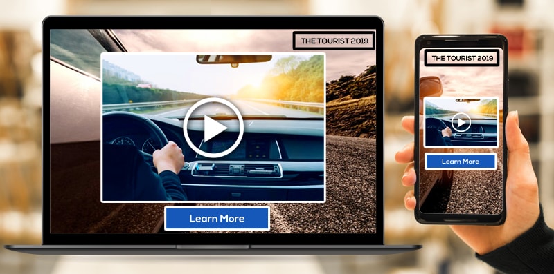 • Responsive videos with close ad and skip ad option on desktop, tablets, and mobiles. This video shows up in-between a browsing session when the user is online.